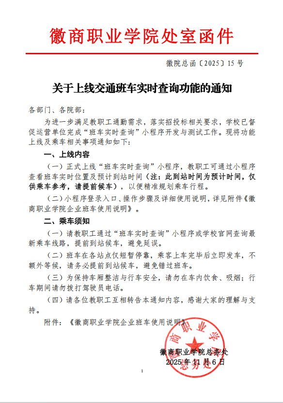 关于上线交通班车实时查询功能的通知